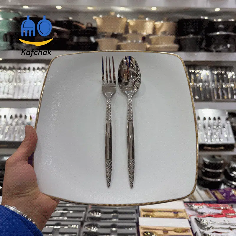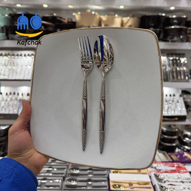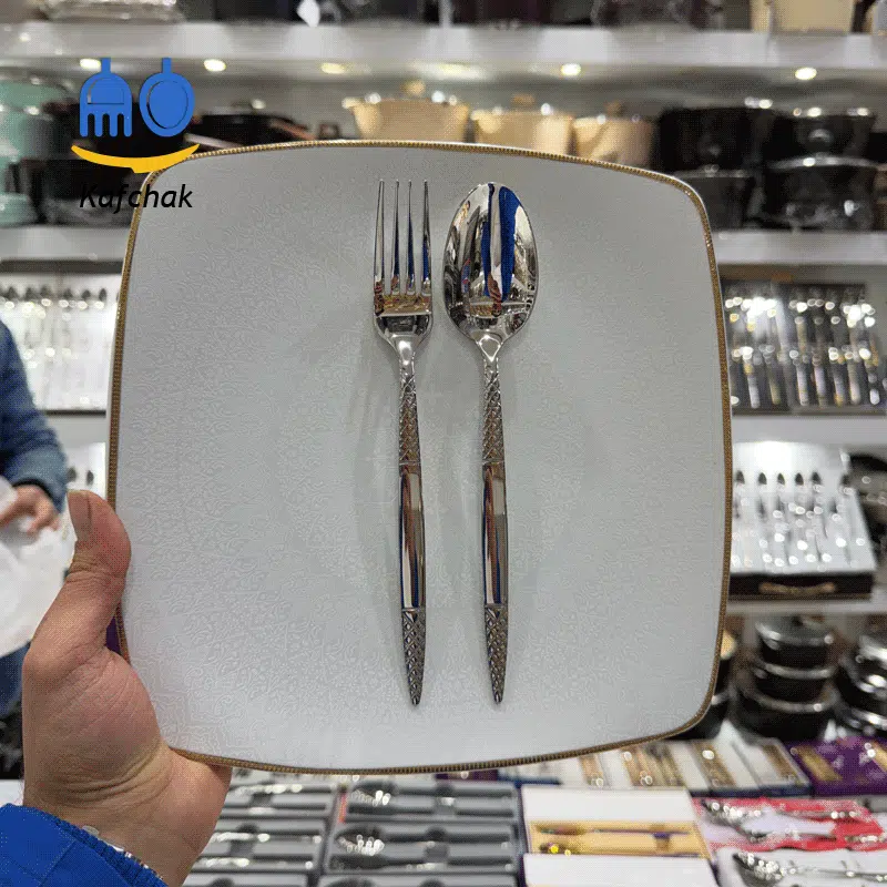 قاشق و چنگال 12 پارچه مدل “شطرنجی” یونیک | طراحی خاص و شیک از استیل ضد زنگ 18/10 با ورق 3 میلیمتر
