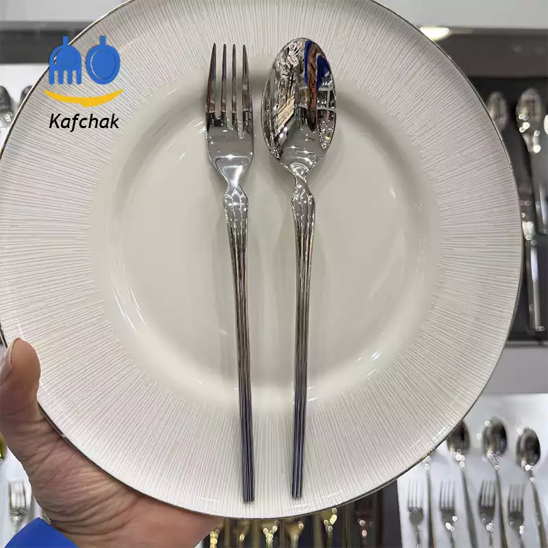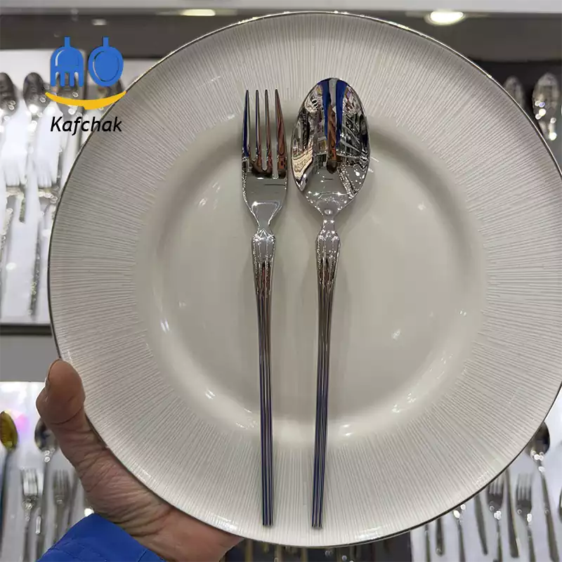 قاشق و چنگال سیتی خطدار یونیک | طراحی شهری و مدرن با استیل ضد زنگ 18/10